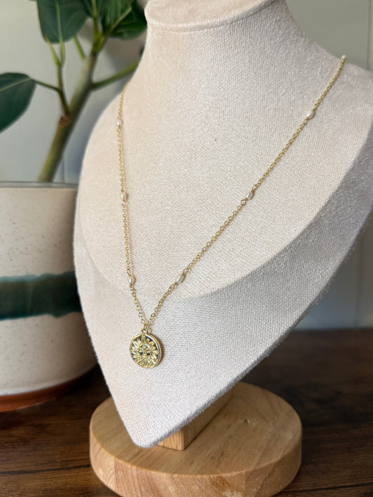 Pearl Chain Sun Charm Necklace