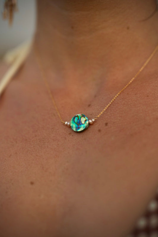 Pearl Framed Abalone Necklace
