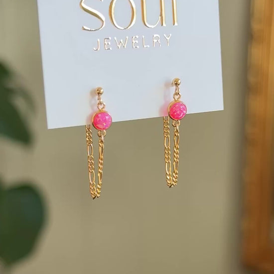 Opal Chain Loop Studs - Pink