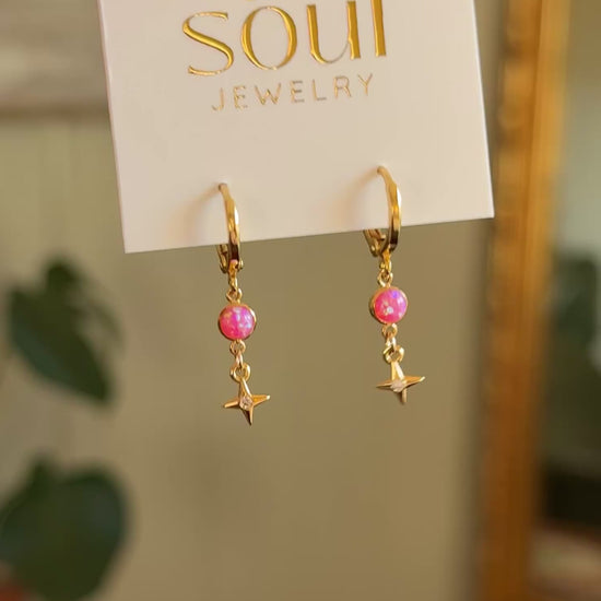 Opal Star Earrings - Pink