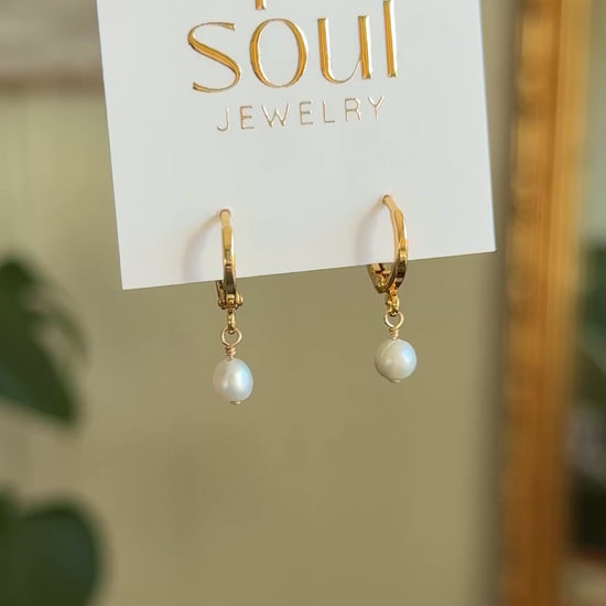 Gold-filled huggie hoops, featuring pale blue freshwater pearls- perfect for everyday wear or to elevate your earring stack