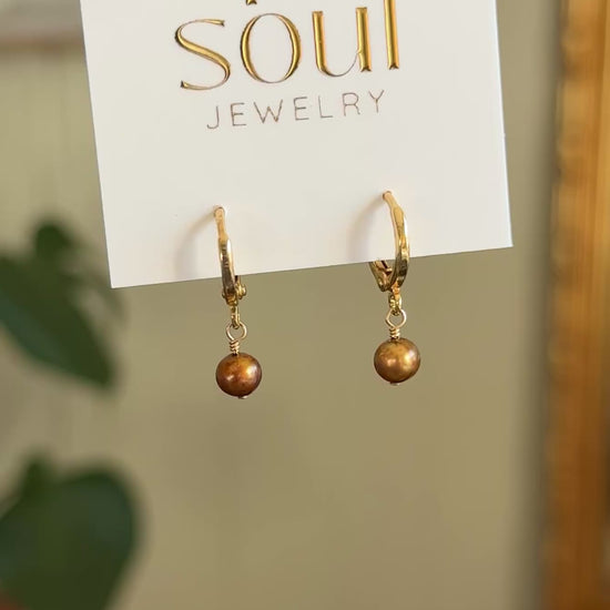 Gold-filled huggie hoops, featuring golden brown freshwater pearls- perfect for everyday wear or to elevate your earring stack